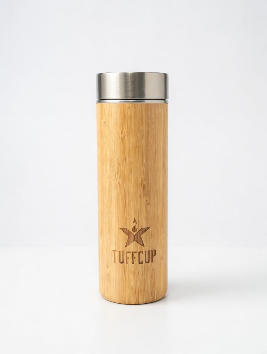TuffCup delivers premium insulation in a refined package. This 15-ounce double-wall stainless steel mug maintains beverage temperature for extended periods, whether you're sipping hot coffee or cold water. It's designed to be both compact and sleek, offering unmatched design with enhanced portability. The removable tea steeper adds versatility for loose-leaf brewing on the go. Constructed entirely without plastic or BPA, it prioritizes durability and safety. The bamboo-accented design strikes a balance between modern aesthetics and functional minimalism—ideal for discerning users who value both performance and style. TuffCup is only available here! You can't find it anywhere else.